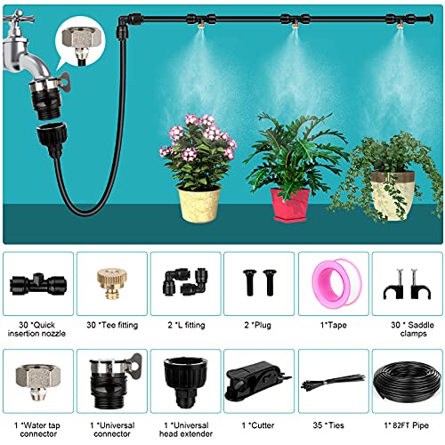 Misting Cooling System, 82FT (25M) Misting Line + 30 Brass Mist Nozzles + Brass Adapter(3/4") for Patio Garden Greenhouse