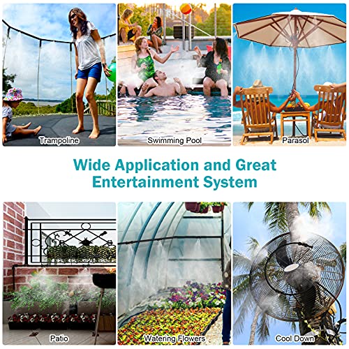 - 【Wide Application】The soft mist can be used in trampoline, water park, umbrella, shade sail, swimming pool, animal cage, and anywhere else for outdoor water playing. Can cover a large area and increase humidity and decrease temperature.