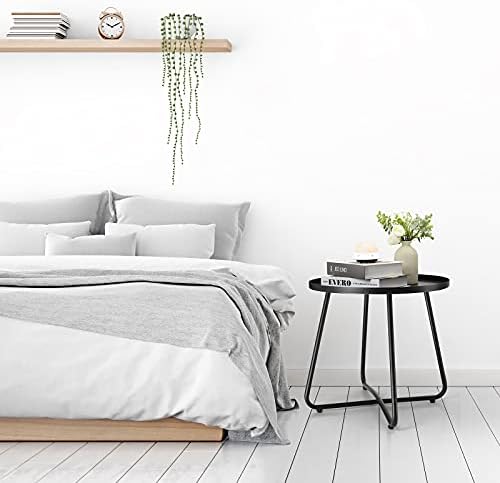 danpinera Outdoor Side Tables, Weather Resistant Steel, Small Round End Table for Patio Yard Balcony Garden Bedside Black