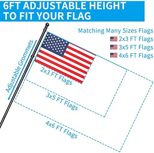 - Adjustable Length: The flag pole kit is equipped with multiple parts. Its length can be adjusted between 1.3 feet and 6 feet (2ft/3ft/4ft/5ft/6ft) to meet your various requirements and different size flags