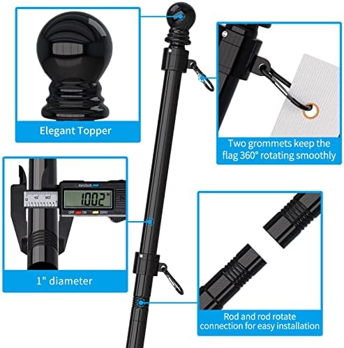 - Exquisite Design: 1*Flag Pole Diameter 1'', 1*Upgraded Bracket, 2*New Tangle Free Rings, 4*Carabiners, 1*Top Ball, 1*Installation Manual