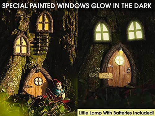 Fairy Door and Windows for Trees – Glow in The Dark Yard Art Sculpture Decoration for Kids Room, Wall and Trees Outdoor | Miniature Fairy Garden Outdoor Decor Accessories with Secret Garden Sign