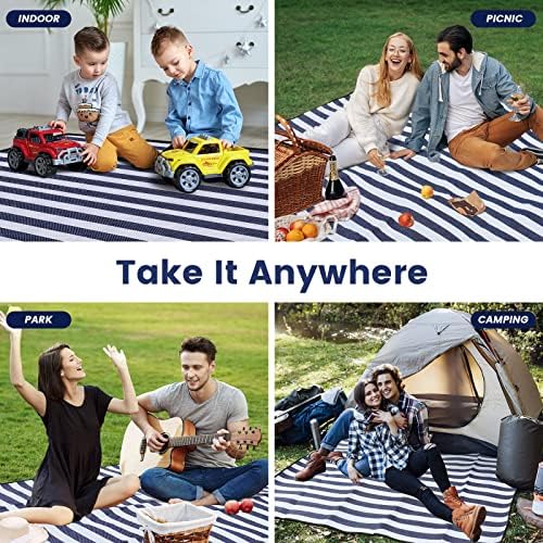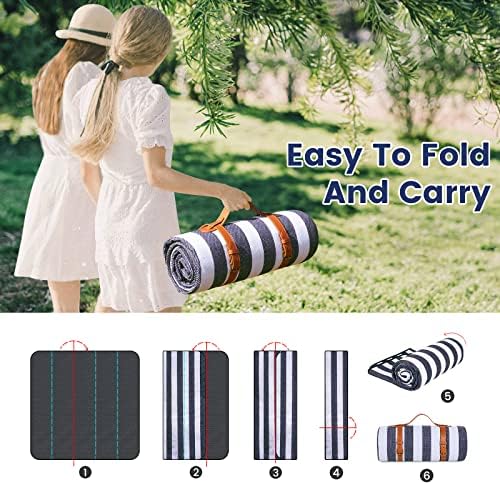 - Waterproof and Sandproof Picnic blanket: The picnic blanket is great choice for beach, park, or bleachers thanks to its PEVA waterproof and sandproof backing. You can easily shake and wipe off dirt, wet grass and beach sand. The picnic blanket is designed to keep out the moisture and make you seat more comfortable.
