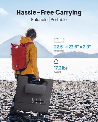 - [Foldable & Portable] - With a folded size of 22.5 × 23.6 × 2.9 inches and a weight of 17.2 lbs, you're able to take this solar panel anywhere you need solar power.