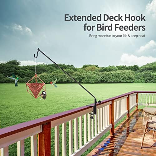- MULTI-PURPOSE DECK HOOKS: Designed for hanging a variety of bird feeders, bird feeder pole allows you to hang your feeder away from the deck, avoiding constantly cleaning bird droppings. Also great for hanging plants, suet baskets, flower pots, wind chimes, decorative lighting and lanterns, adding elegance and beauty to your outdoor living space.