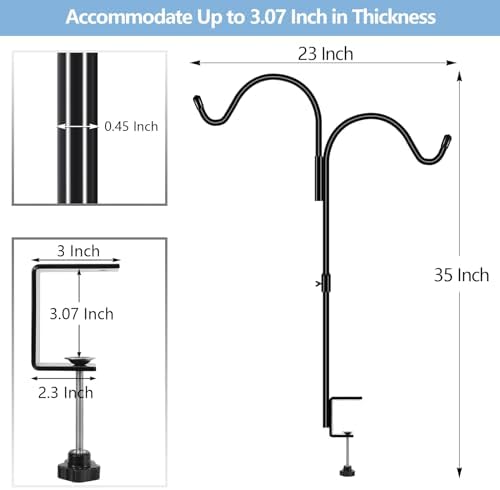 Gtongoko 35 Inch 2 Pack Double Deck Hook for Railing, Deck Bird Feeder Pole with 3 Inch Strengthened Clamp for Hanging Bird Feeders, Lanterns, Wind Chimes, Flower and Plant Baskets