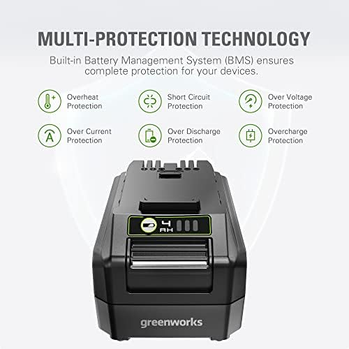 - Greenworks 24V 4Ah (96Wh Max) lithium-ion battery delivers fade-free power with no memory loss after charging