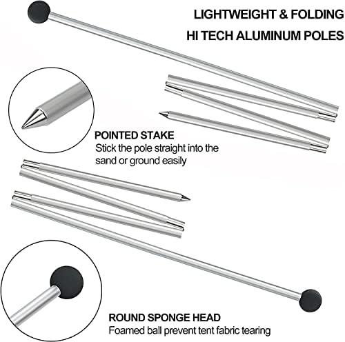 UMARDOO Family Beach Tent Extra Replacement Aluminum Foldable Poles, Portable Telescoping Tent Poles for Awnings Canopy (6.5FT)