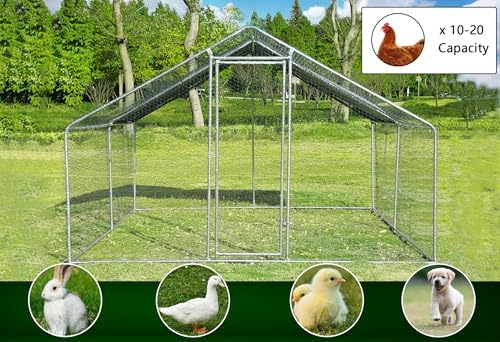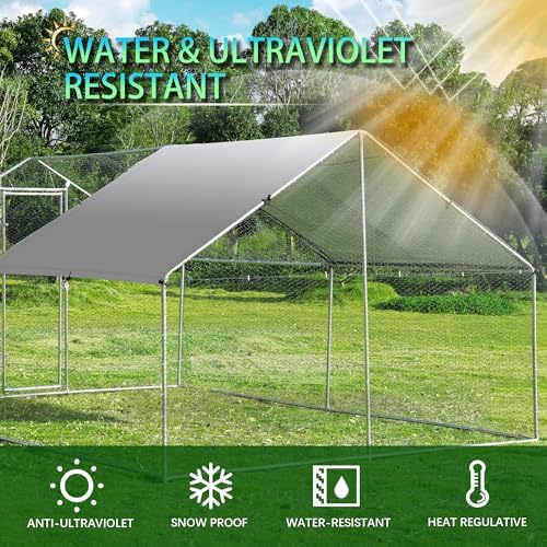 - 🐣【Durable Steel Structure】Our heavy-duty metal coop (13’ D x 10’ W x 6.5’ H) is made of the high-quality steel frame. A large metal coop for long-term use is the point we keep in mind all the time when we produce this product, so we added additional support round spacers. The stainless steel coupled with galvanizing technology resistance of the cage.