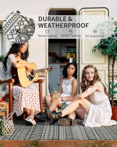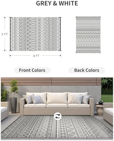 MontVoo Outdoor Rug Carpet Waterproof 5x8 Outdoor Patio Rug Mat Reverisble Plastic Straw Outdoor Rug for RV Camping Picnic Beach Balcony Boho Grey