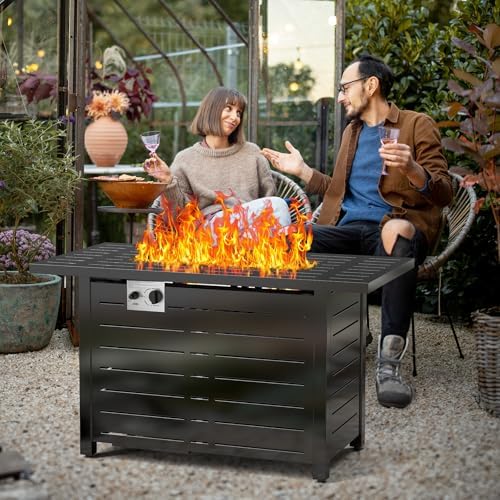 Xbeauty Fire Pit Propane Gas FirePit Table 43" Outdoor Fire Pit Rectangular Tabletop with Lid, Rain Cover, for Outside Garden Backyard Deck Patio
