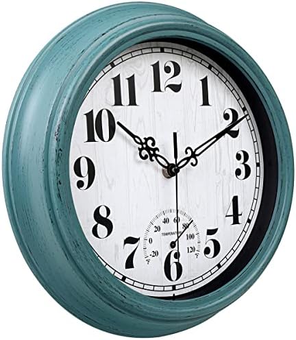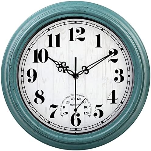 - 【Waterproof & Temperature】This outdoor wall clock with thermometer. It's waterproof and can be placed for patio,porch,pool,bathroom,deck,etc without worrying about get wet.