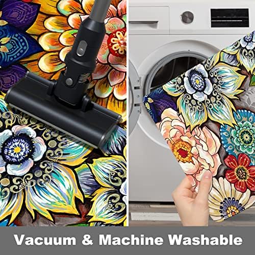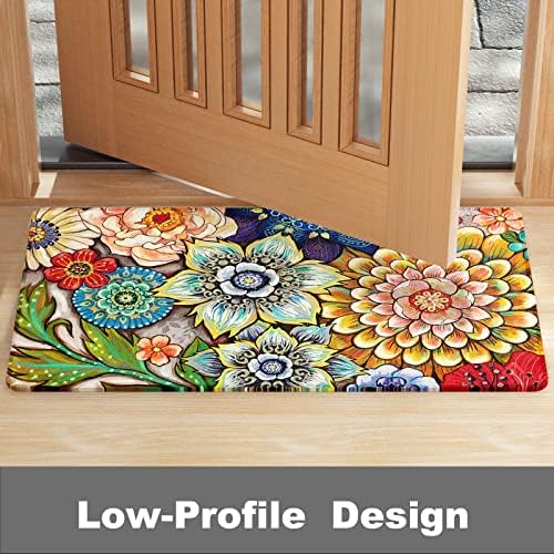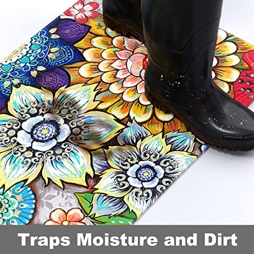 Rnivvi Front Door Mat, 30"x17" Flower Theme Indoor Outdoor Welcome Mat, Heavy Duty Low Profile Anti-slip Entryway Rug for Home Entrance, Floor, Patio Entry, Mud Room, Cute Mandala Floral Decor Doormat