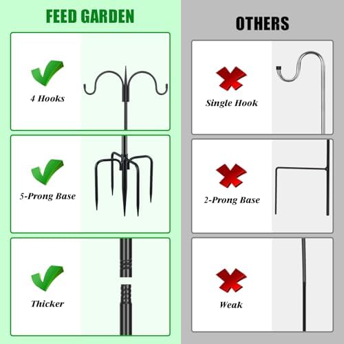 FEED GARDEN Adjustable Double Shepherds Hook for Outdoor with 5 Prong Base 76 Inch Heavy Duty Two Sided Bird Feeder Pole for Hanging Plant Baskets, Solar Light Lanterns, Wind Chimes 2 Pack