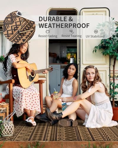 MontVoo-Outdoor Rug Carpet Waterproof 5x8 ft Reversible Patio Rug RV Camping Rug-Plastic Straw Rug Outside Indoor Outdoor Area Rug for Patio Deck Balcony Picnic Beach Outdoor Decor Boho Black Brown