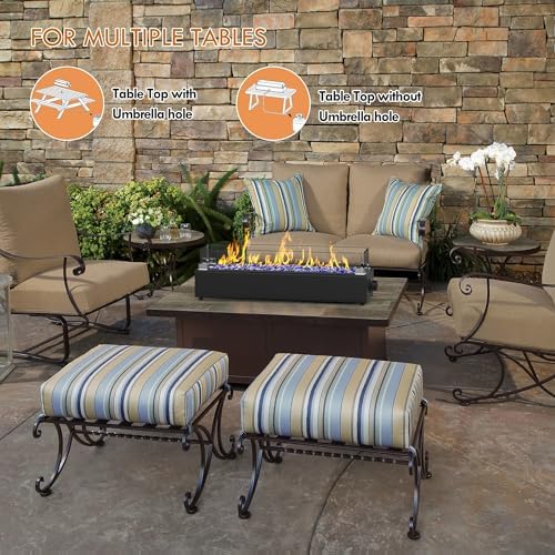 - Work with different tables - the coffee table, dining table or umbrella hole table, our design has addition of unique rear-mounted hose regulator design, you can easily set up this fire pit on any tabletop with the 8ft gas hose supply.