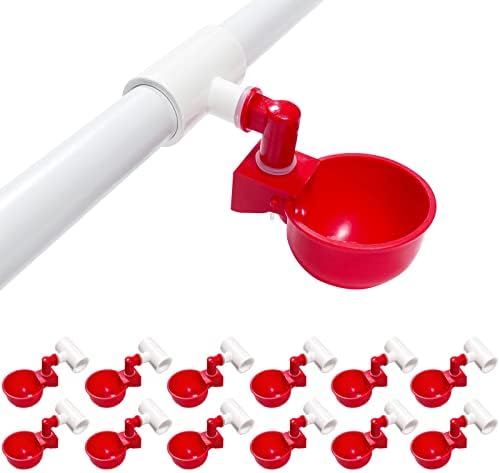 Chicken Water Cups for PVC with Tee (12 Pack), Automatic Chicken Waterer Kit for Poultry, DIY PVC Water Feeder for Chicken/Duck/Quail/Turkey