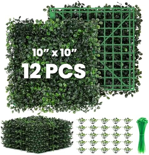 Grass Wall 12 Pack 10"x10" Artificial Boxwood Hedge Wall Panels, Privacy Hedge Screen Faux Boxwood for Outdoor,Indoor,Garden,Fence,Backyard,Greenery Walls
