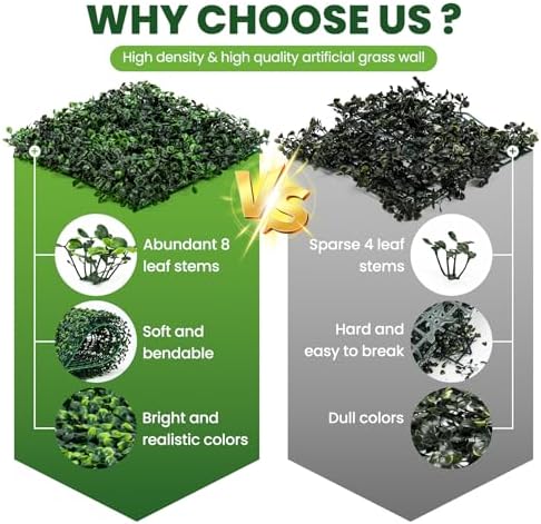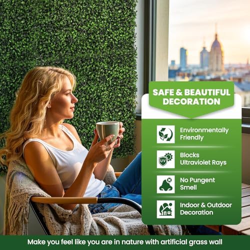 - Multiple Usage Grass Wall: Faux plant wall can be used to decorate outdoor areas or the interior of the room, for greenery wall background, and other places like balcony, living room, office work area; Outdoor applications for a patio privacy screen, use in porch, fencing, yard, walkways, etc.. A prefect decoration of wall greenery decor.