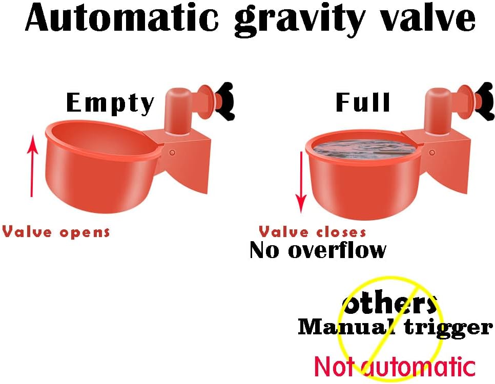 - Advantages: The pipeline automatically supplies water to the poultry drinking water system, and there is no need to add water manually. Gravity water dispenser, the water will automatically fill the cup without overflowing. The kit is equipped with nuts. If the pipeline automatic poultry drinking system is not installed temporarily, you can also directly install the automatic poultry drinking cup on the bucket and tighten the nuts on the inside.Can also be used