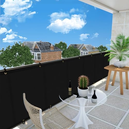 UPGRADE Balcony Privacy Screen Fence Commercial Shade Cover 3' x 16' with Ties Durable and UV Resistant Perfect for Deck Patios-Black, Customizable