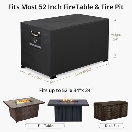 - 【52 Inch Fire Pit Cover Rectangular】 Measures 52' x 34' x 24' (L x W x H), QH.HOME fire pit cover rectangular are designed to fit most propane fire pit table from 49 to 52 inch. Perfectly compatible with most popular brands' firepits likeBest Choice, realflame and More. ( Please check the size of your fire table carefully before ordering )