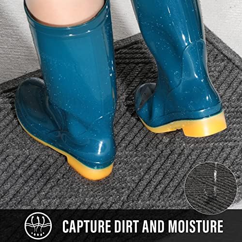 - Capture Dirt and Moisture: Doormat super absorbent, HIYARD outdoor welcome mat holds up to 1.8 gallons of water per square yard. Deep groove design and rubber border helps capture water and prevents excess water from spilling onto the ground. Indoor door mat surface fibers scrape dust and debris from your shoes, boots, paws. Let the dirt stay out
