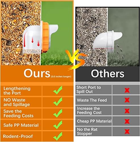 - Upgrade DIY Chicken Feeder: The internal opening of the chicken feeder port has increased by 0.6 inches. This chicken feeder no waste reduces spillage and chaos, saves feed costs, and makes your chicken coop clean and comfortable
