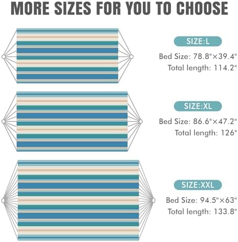 - Perfect 1-2 Person Hammocks for Outside: INNO STAGE hammock swing with a hammock bed surface length of 86.6' and width of 47.2', our hammocks is designed to accommodate a 1-2 person perfectly. The overall length of 126' provides ample space for relaxation while still maintaining a compact size. It can support a weight capacity of up to 242 pounds, ensuring stability and safety during use.
