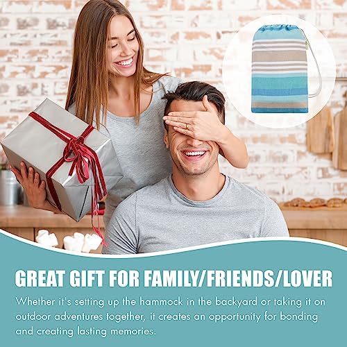 Brazilian Hammock with Tree Straps - Canvas Hammocks Portable Hammock with Carry Bag for Backyard, Porch, Outdoor and Indoor Use Blue & Green