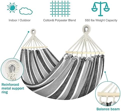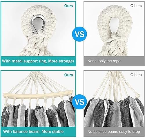 MOSFiATA Hammocks Portable Camping Hammock Upgraded 550lb Comfortable Fabric Hammock with Two Anti Roll Balance Beam and Sturdy Tree Straps for Camping, Patio, Backyard, Outdoor (Grey)
