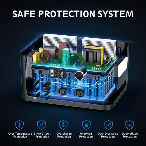 - PURE SINE WAVE 110V AC OUTLET: It can power your outdoor electronics without worry. It's better than modified sine wave, the pure sine wave(110V 600W) power will protect your sensitive devices. Besides, our R600 portable power bank with flexible handle, easy to carry to wherever you go. It is perfect for RV Trip, camping, hunting, blackout, indoors/outdoors emergency