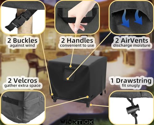 - 【 600D Heavy Duty 】 WICKTICK Square Fire Pit Table Covers are made of High-Class 600D Oxford fabric, much better than ordinary 420D/210D covers