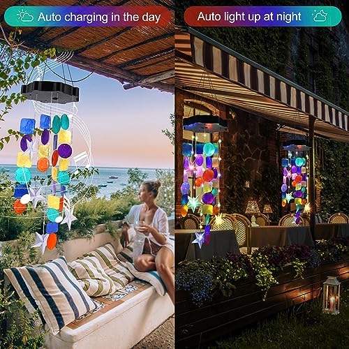 Solar Wind Chimes for Outside, Colorful Shell Gifts for Mom Grandma Women, Waterproof Solar Outdoor Decorative Mobile Lights for Garden, Yard, Patio, Window, Party, Outdoor Decorations