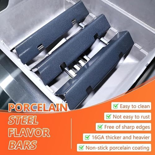 - đ„ăSUPER HEAT PRESERVATIONă Upgraded weber spirit ii flavorizer bars is made of porcelain steel, which has strong corrosion resistance and heat resistance. The unique material properties enable the cast iron grill to quickly form a high temperature environment, leaving a clear mark on the surface of the food! Provide cooks with a better temperature control experience and professional-level grilling effect!