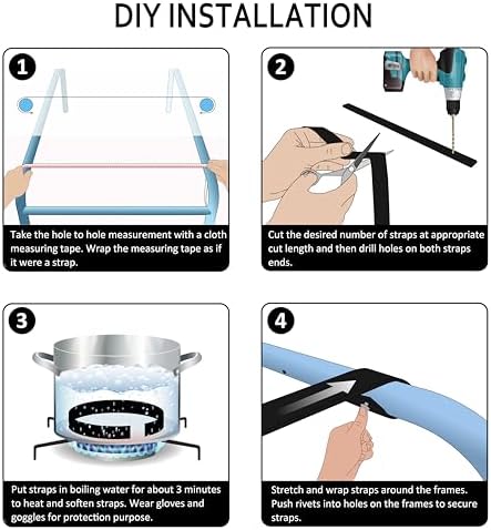 - [WARM TIPS]: Heat the vinyl straps in boiling water for 3~5 minutes prior to use. Once the strap is removed from the water it cools quickly and become stiff and difficult to stretch into place, so bring the pot to your work area to limit he time the straps get cool. Wear thick waterproof gloves to handle.