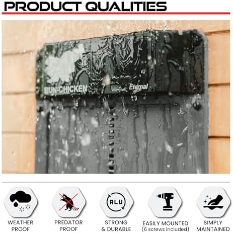 RUN-CHICKEN Door (Gray) Solar Chicken Coop Door, Battery Powered Automatic Chicken Coop Door, Programmable Electric Chicken Door with Timer, Light Sensor, Solar Powered, Eternal