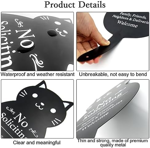 Handook No Soliciting Sign for House Funny Metal No Soliciting Yard Sign, 16.5"x7.1" Black Cat No Solicitation Sign for Home and Business