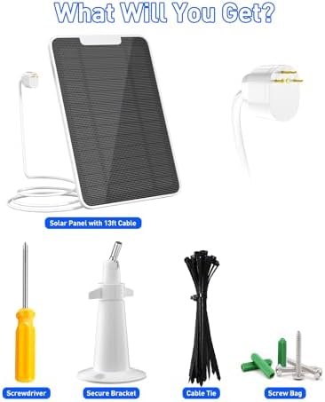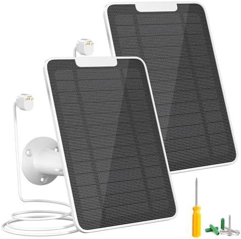 - 【You can Get】The nest outdoor camera solar panel are made of high-quality and environmentally friendly materials, including 2 solar panel with 4M cable, 2*adjustable wall mount, 2*screw bags, 160*cable tie, 1*screwdrive. Please note that the charging efficiency depends on the intensity of the sun's rays and the speed at which the outdoor cameras consume power. If you have any questions, feel free to contact us, your satisfaction is always our aim.