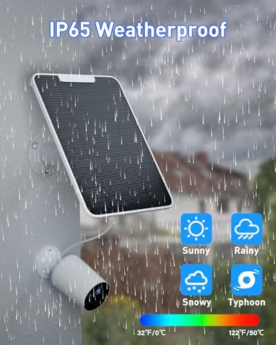 - 【IP65 Waterproof】The nest outdoor camera solar panel is IP65 waterproof, the surface is made of monocrystalline silicon material, the frame and bracket are made of plastic alloy, which can resist heavy snow, heavy rain and other severe weather conditions. Working conditions: 32℉-122℉(0°C to 50°C). Can be installed outdoor anywhere to provide solar energy for your wireless security camera.