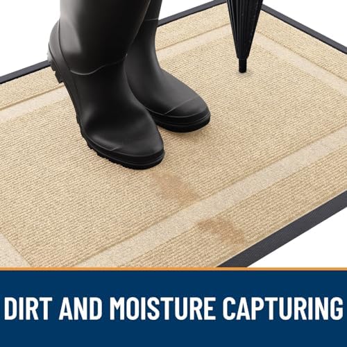OLANLY Front Door Mat Indoor Outdoor Entrance, Waterproof All-Season, All-Weather Doormat, Sturdy Natural Rubber, Fade Resistant, Low Profile, Easy Clean Patio Porch Entryway Mat, 29.5x17, Beige