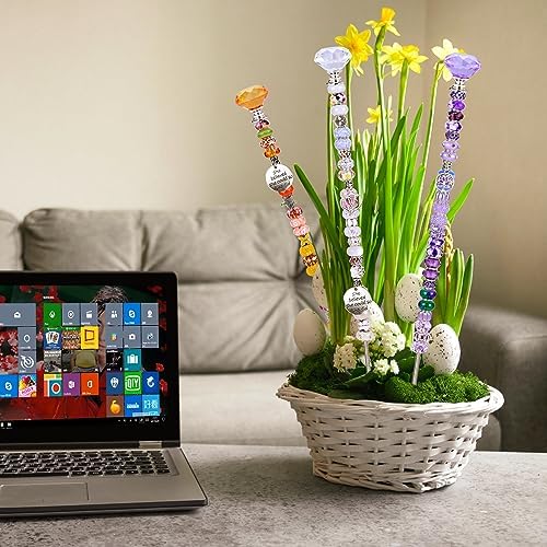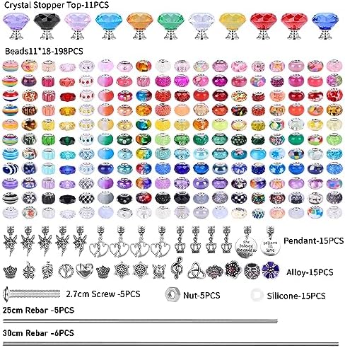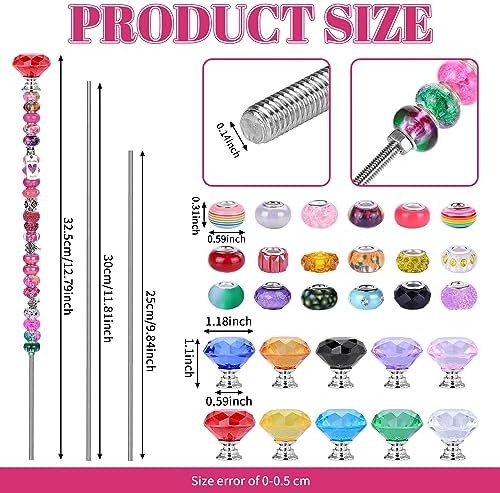 AIPRIDY 275 Pcs DIY Fairy Wand Garden Stakes Kit,Multiple Color Scheme European Beads Crystal Diamond Tops and 12 or 10 Inch Threaded Rods,Stainless Steel Stakes with Diamond Toppe(Rainbow)