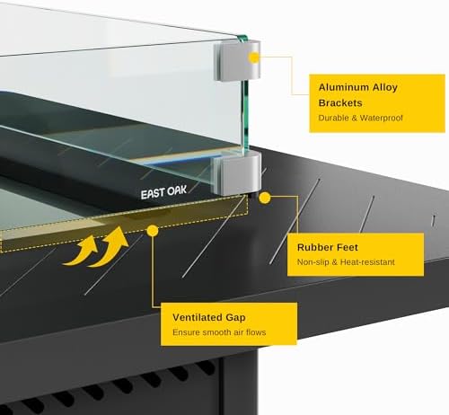 EAST OAK Glass Wind Guard for 28''&32'' Propane Fire Pit Table, Clear Tempered Wind Guard for Gas Firepit, Thick Rectangle Glass Shield with Aluminum Corner Bracket & Rubber Feet,20 x 20 x 4 inch