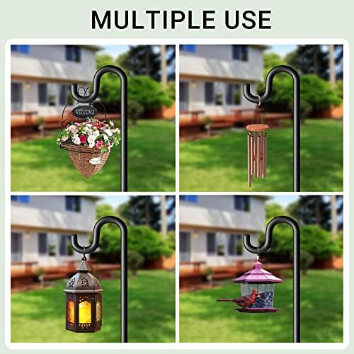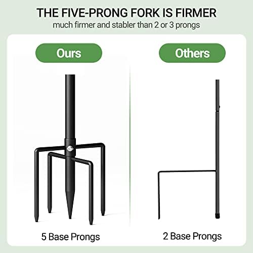 - 5 Prong Base - The garden hook for outside has been upgraded with 4 extra long and double forked base prongs to be total of 5 prongs. Compared with other hooks that only have 2 or 3 Prongs, tall shepherds' hook can maintain a fixed, upright posture while standing firmly planted in the ground without easily falling down