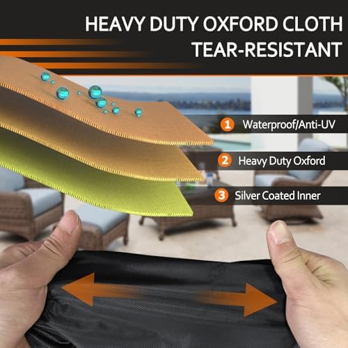 - ULTRA PROTECTION- STARTWO patio chair cover is made of 100% heavy-duty 600D Oxford fiber to protect your patio furniture from outdoor elements like sun, dirt, rain, and snow. The Oxford fabric with an added water-resistant coating and a water-resistant laminated backing could prevent water from seeping through the Cover and keep your outdoor furniture dry and ready to use.
