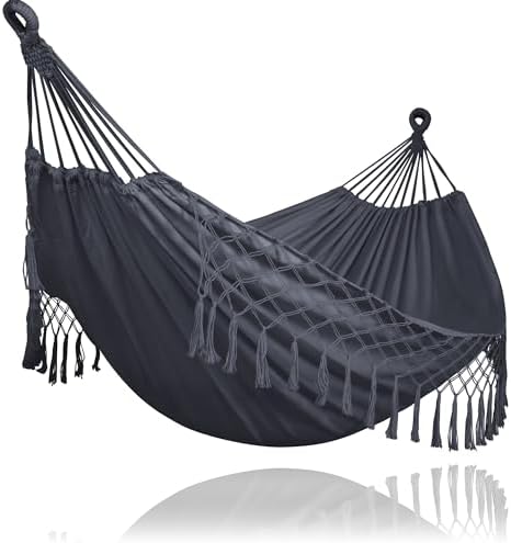 SUNCREAT Extra Large Double Hanging Hammock for Camping, Hammocks for Outside 2 Person Heavy Duty, Dark Gray with Tassels