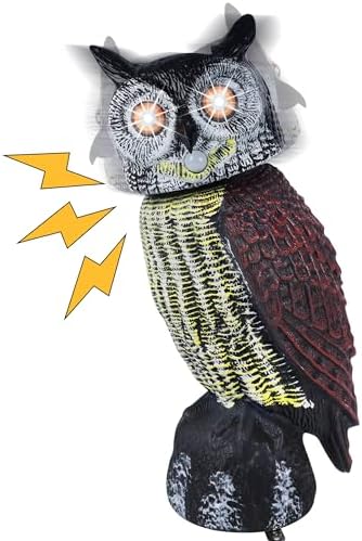 Hausse Solar Fake Owl Decoy Scare Birds Away, Solar Powered Motion Activated Scarecrow Deterrent Owl with Glowing Eyes, Scary Sound & Rotate Head, Nature Enemy Bird Repellent for Outdoor Garden Yard