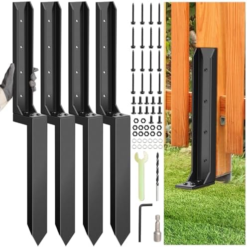 4 Pcs Fence Post Repair Kit, Heavy Duty Fence Post Anchor Ground Stakes for Repair Tilted, Broken Wood Support