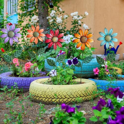 - 【5 PCS METAL FLOWERS OUTDOOR DECOR】This outdoor garden decor set is made up of 5 outdoor metal flowers for garden, each flower measures 4.92 inches in diameter and 16.14 inches in height. The vibrant metal flower set will bring a boost of color to any yard or garden!