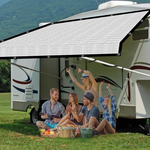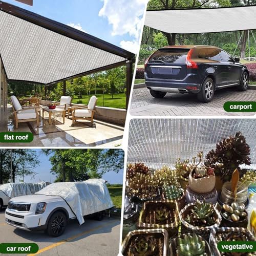 - ●【Well-made】: Aluminum -Shade Cloth 10x20',Reflective 80% Aluminum Shade Cloth - for Car Garden,Outdoor Pergola,Lawn.Aluminum Shade Cloth with Edges and Holes,Silver Heat Reflective Tarp shade cloth adopting locking eye weaving technology to avoid opening and jamming phenomenon,the shade cloth adopts 12-pole thickening and encrypted six-lane car lines to increase the tensile strength